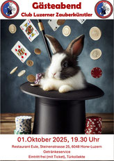 Nach dem Abendessen eigt der Club Luzerner Zauberkünstler CLZ seine vielfältigen zauberkunststücke auf der Bühne und an den Tischen. Lässiger Abend mit viel Unterhaltung und feinem Essen!